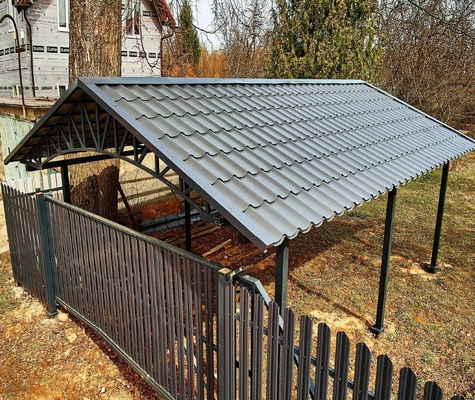 Навес из металлочерепицы двускатный для авто